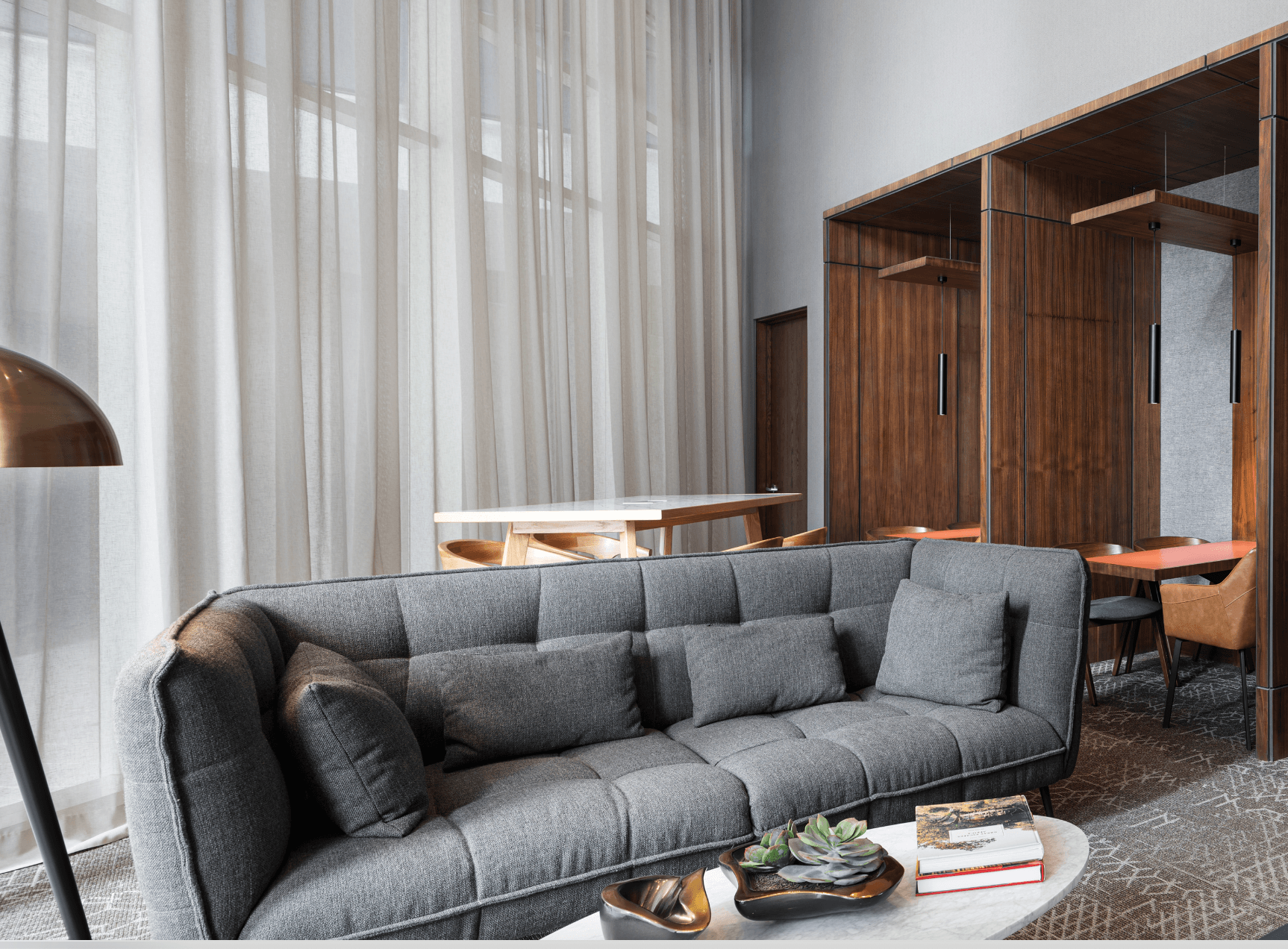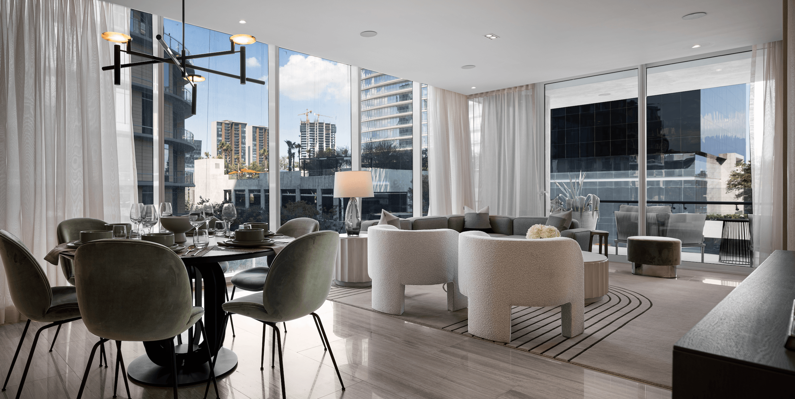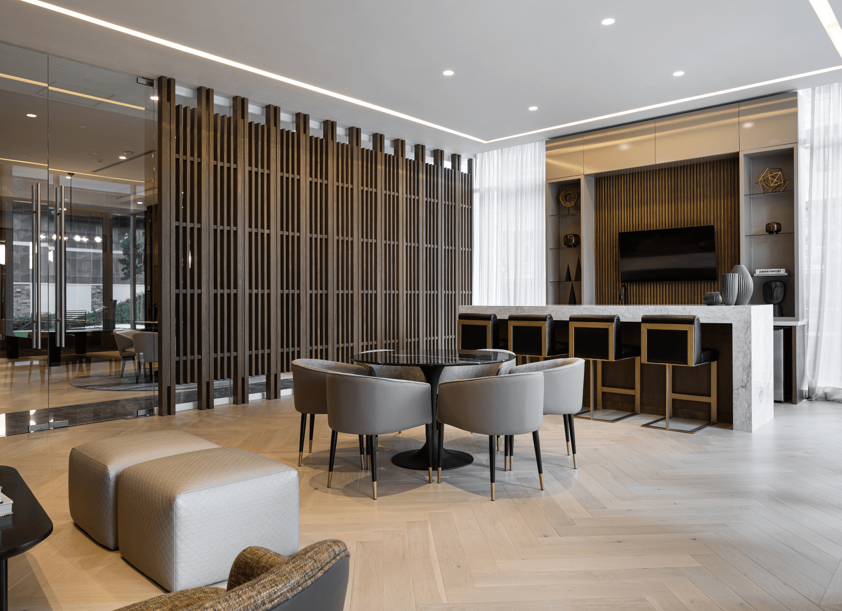 Las áreas comunes de (él) Árbol se conciben como extensiones naturales de la vida cotidiana, donde el diseño promueve la convivencia. Desde el lobby y los espacios de co-work hasta las salas modulares, áreas de juego y un cuarto de música, los interiores ofrecen entornos versátiles que se adaptan a un estilo de vida activo, divertido, saludable y de bienestar.