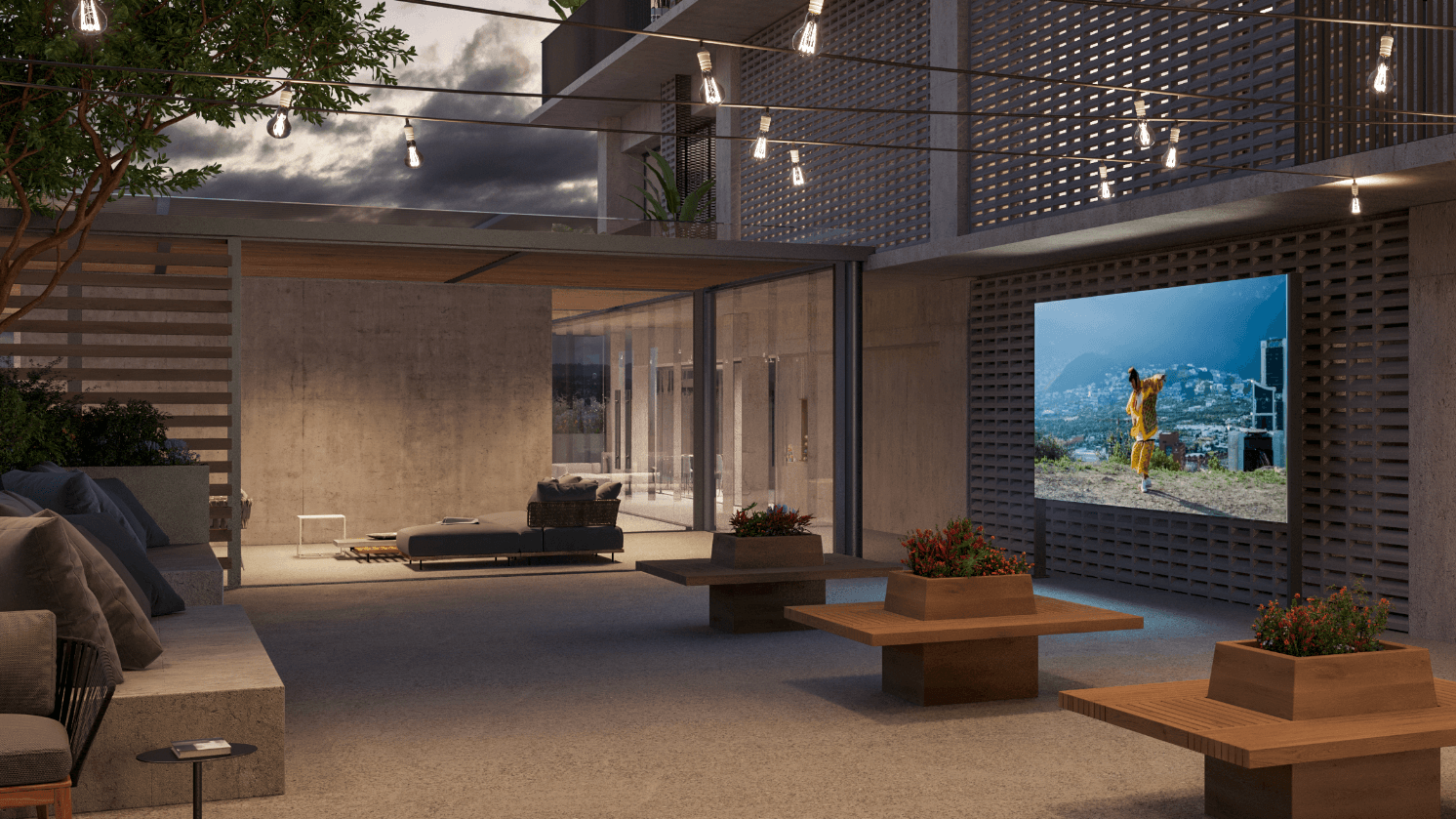 Juegos exteriores, salones de eventos y usos múltiples, game room, sports bar y espacios al aire libre se entrelazan con una alberca panorámica, cine exterior, fogatero, asadores y cocina exterior, creando escenarios que invitan a compartir y disfrutar sin prisas. Un espacio de trabajo funcional convive con áreas abiertas que permiten que cada día fluya entre lo social, lo personal y lo profesional en un entorno armónico y contemporáneo.